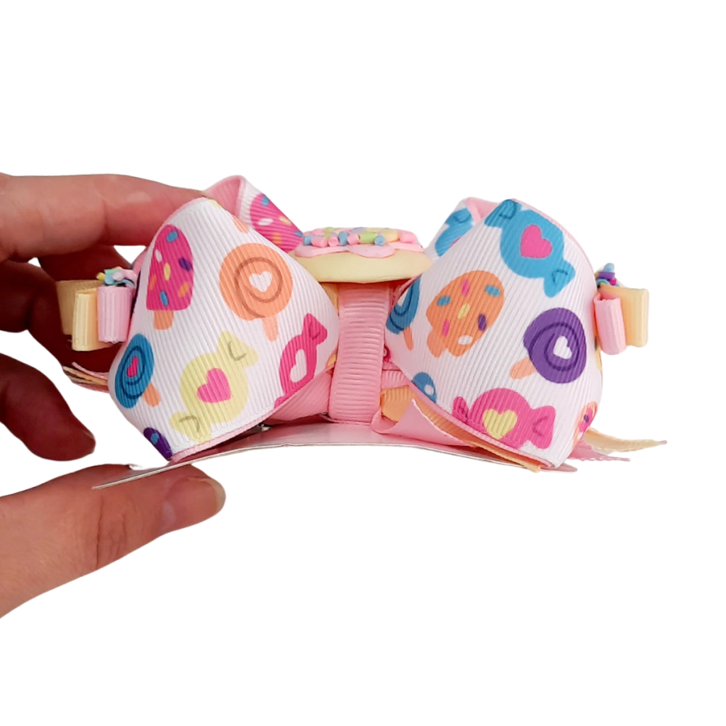 Laço artesanal infantil amora com cruzado, com aplique, no bico