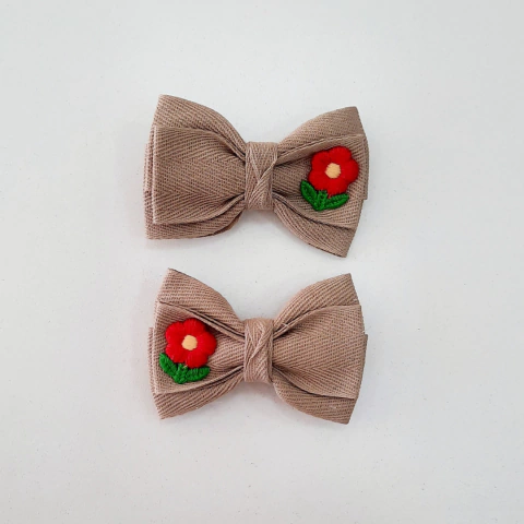 Par de laço cruzado artesanal no bico, com aplique de flor