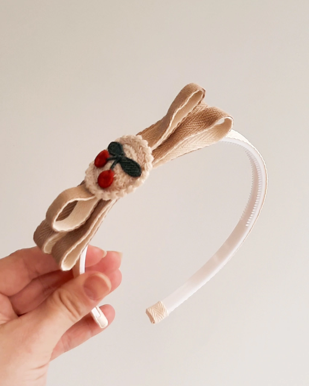 TIARA EM LINHO COM BABADO E APLIQUE CEREJA TR0219